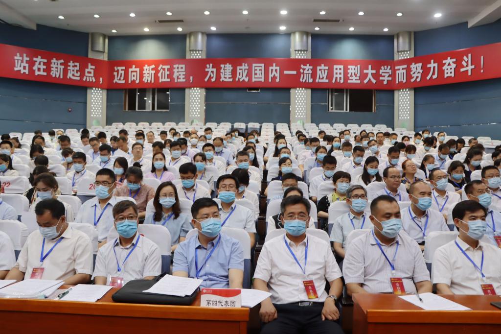 校党委副书记、校长李文喜作了题为《凝心聚力 攻坚克难 奋力开启国内一流应用型大学建设新征程》的工作报告。报告首先从党的建设水平全面提升、转型发展走出特色之路、人才培养质量稳步提高、师资队伍建设明显加强、学科科研工作成效显著、社会服务能力持续增强、对外交流合作有效拓展、内部治理体系日趋完善、文化传承创新扎实推进、办学保障能力显著增强等十个方面,系统回顾了“十三五”以来学校事业发展所取得的显著成绩。同时,报告科学分析了学校当前面临的形势与存在的问题,指出新时代赋予学校发展新使命、新坐标赋予学校发展新机遇、新挑战赋予学校发展新动力。