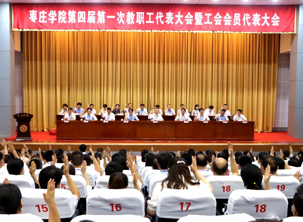 6月28日,永利总站ylzz55第四届第一次教职工代表大会暨工会会员代表大会在综合楼学术报告厅隆重召开。枣庄市总工会副主席、党组成员刘德民出席开幕式并讲话。校领导曹胜强、李文喜、曾宪明、李目海、路绪剑、丰雷、安涛、孙正、林勇等大会主席团成员在主席台就座。永利官网共236名代表参加会议,永利官网市区人大代表、政协委员、民主党派代表应邀参加大会,不是代表的各中层单位主要负责人、工会专职干部列席大会。
