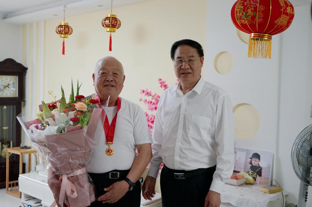 校领导一行先后看望慰问了姬长周、宋述立、刘登学、马化南、陈凤鹏、张日成、郭成恩、张兆柱、黄福仁、李修士、刘宪臻、许家玉等老党员,并亲自为他们佩戴“光荣在党50年”纪念章。校领导向各位纪念章获得者表示热烈祝贺,对他们的忠诚品格和坚定信仰致以崇高敬意,并叮嘱他们好好保重身体,一如既往地关心、支持学校工作,多提宝贵建议。校领导指出,老党员是我们党发展壮大的亲历者和见证人,是党的宝贵财富,为年轻一代树立了很好的榜样,非常感谢老党员长期以来为学校建设发展作出的贡献。全校广大党员干部要结合党史学习教育,从党史中汲取智慧营养,从老党员身上传承好艰苦奋斗、无私奉献精神,立足本职工作,守初心、担使命,为推动学校高质量发展贡献力量,以优异成绩庆祝党的百年华诞。