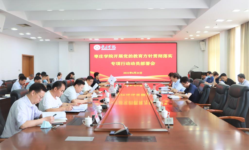 6月24日下午,永利官网在综合楼三楼会议室组织召开党的教育方针贯彻落实专项行动动员部署会,传达学习贯彻省委教育领导小组办公室《关于转发<中央教育工作领导小组秘书组关于在各级各类学校开展党的教育方针贯彻落实专项行动的通知>的通知》精神。校党委副书记曾宪明主持动员会并讲话。校党委委员、组织部部长孙正,校党委委员、宣传部部长张昌林,各党总支书记,相关部门负责人参加会议。