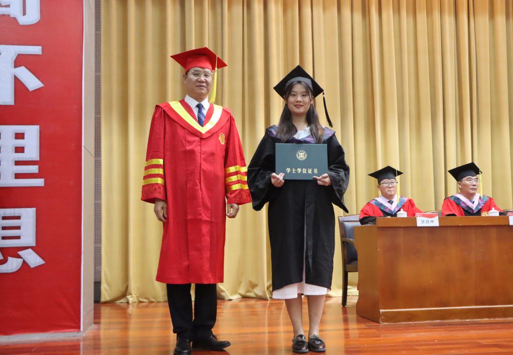 首先,校党委委员、副校长安涛宣读了《永利总站ylzz552021届学士学位授予决定》,同意授予白雪梅等3919名普通全日制本科毕业生学士学位,授予陈超等372人成人高等教育本科毕业生学士学位。随后,112名毕业生代表满怀书山跋涉的喜悦,在欢快的音乐声中走上主席台,校长李文喜依次为他们拨穗正冠、颁发学士学位证书并合影留念。激动与喜悦写在每一位毕业生脸上,温馨与感动留在每一位毕业生心中。
