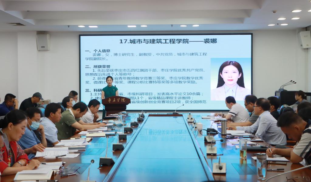 王丽介绍了此次评选活动的整体情况、评选范围、评选标准等有关事项。随后,23位参评教师依次进行个人事迹展示。老师们从教书育人、爱岗敬业、关爱学生、潜心科研等角度, 或朴实、或生动地讲述了自己为党的教育事业争光添彩、落实立德树人根本任务的丰硕成果。23位教师,不一样的故事、不一样的感动,却有着同样博大的爱心、同样热忱的教育情怀。他们平凡中见卓越,朴实中见崇高,用美好教育灌溉美好生命,用实际行动诠释教育真谛。个人事迹展示结束后,全体评委从理想信念、道德情操、扎实学识、仁爱之心等四个方面对参评教师进行综合评价,并实名投票推荐。