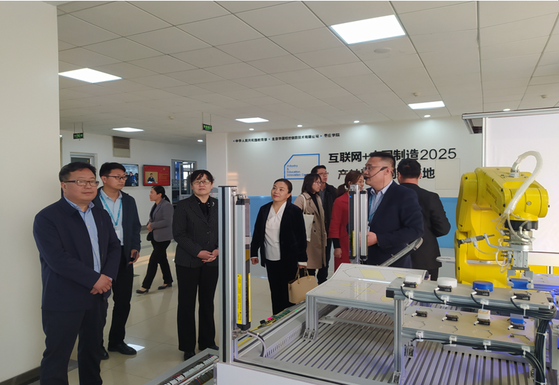 座谈会后,邵莲芬一行在丰雷、徐玲等人的陪同下参观了永利官网“互联网+中国制造2025”和“AI+智慧学习”共建人工智能学院产教融合基地。