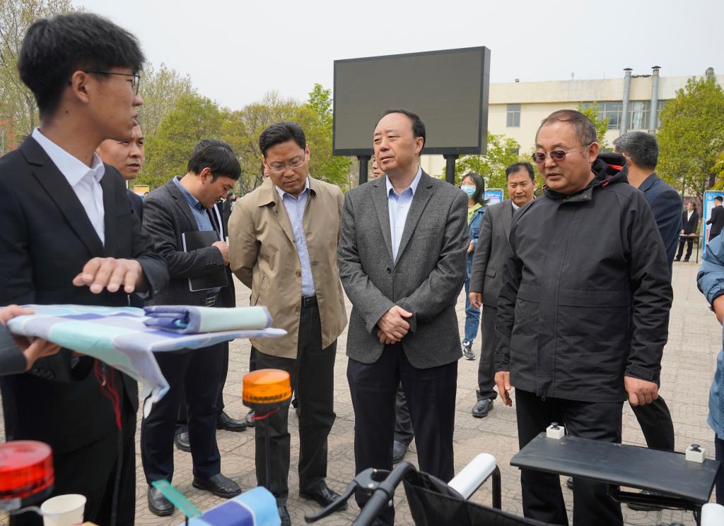为深入贯彻党的十九届五中全会精神,进一步引导广大学生培养科学精神和科学态度,踊跃投身创新驱动发展战略,4月7日,由团委、教务处、创新创业学院主办,机电工程学院承办的永利总站ylzz55第十届“挑战杯”大学生课外学术科技作品竞赛决赛在五四青年广场和综合楼报告厅举行,校党委书记曹胜强,党委委员、宣传部部长张昌林莅临现场并给予指导,办公室、团委、学生工作处、教务处、科技处、招生就业处、创新创业学院等部门负责人一并观摩了决赛现场展示环节。