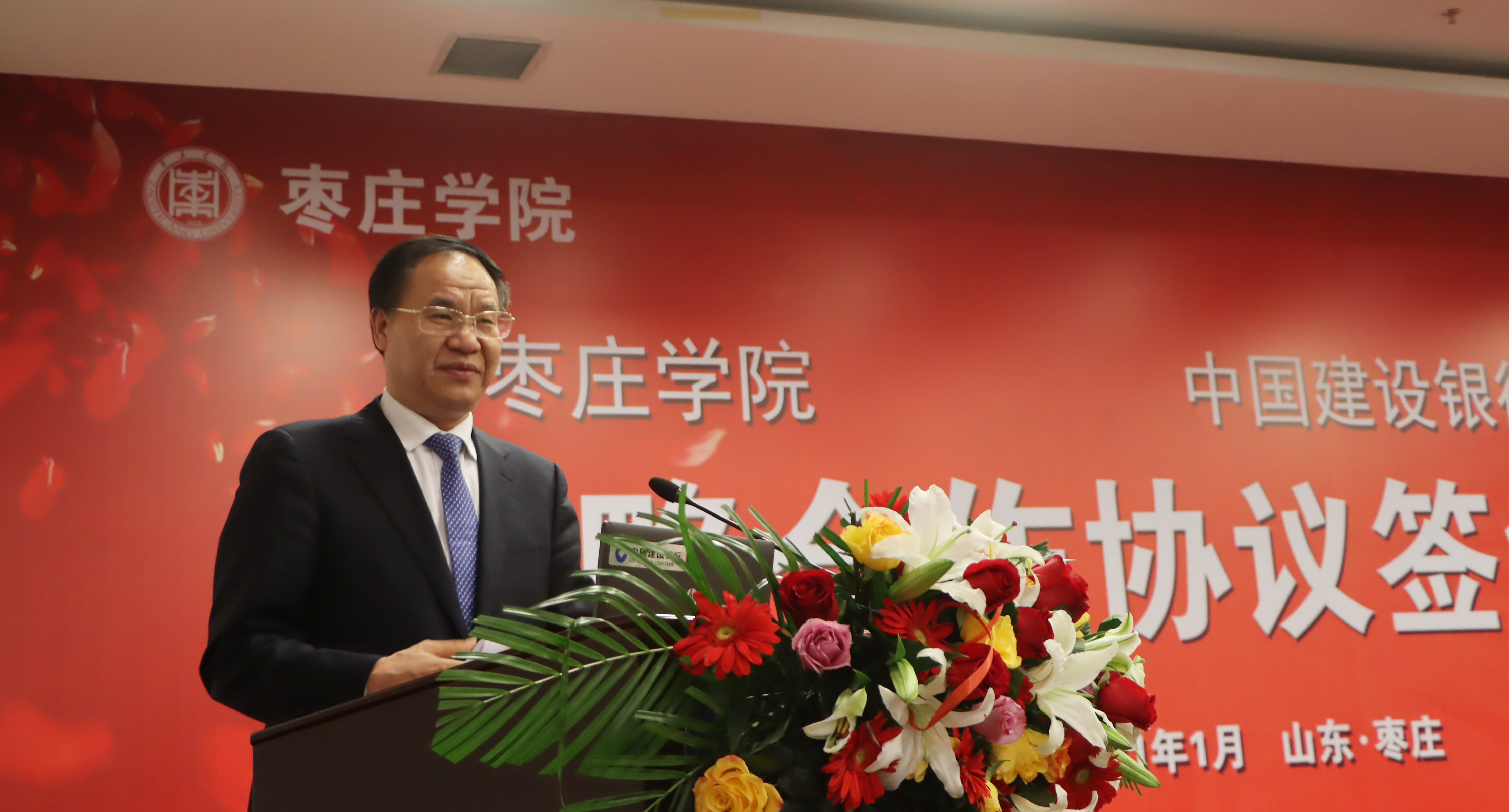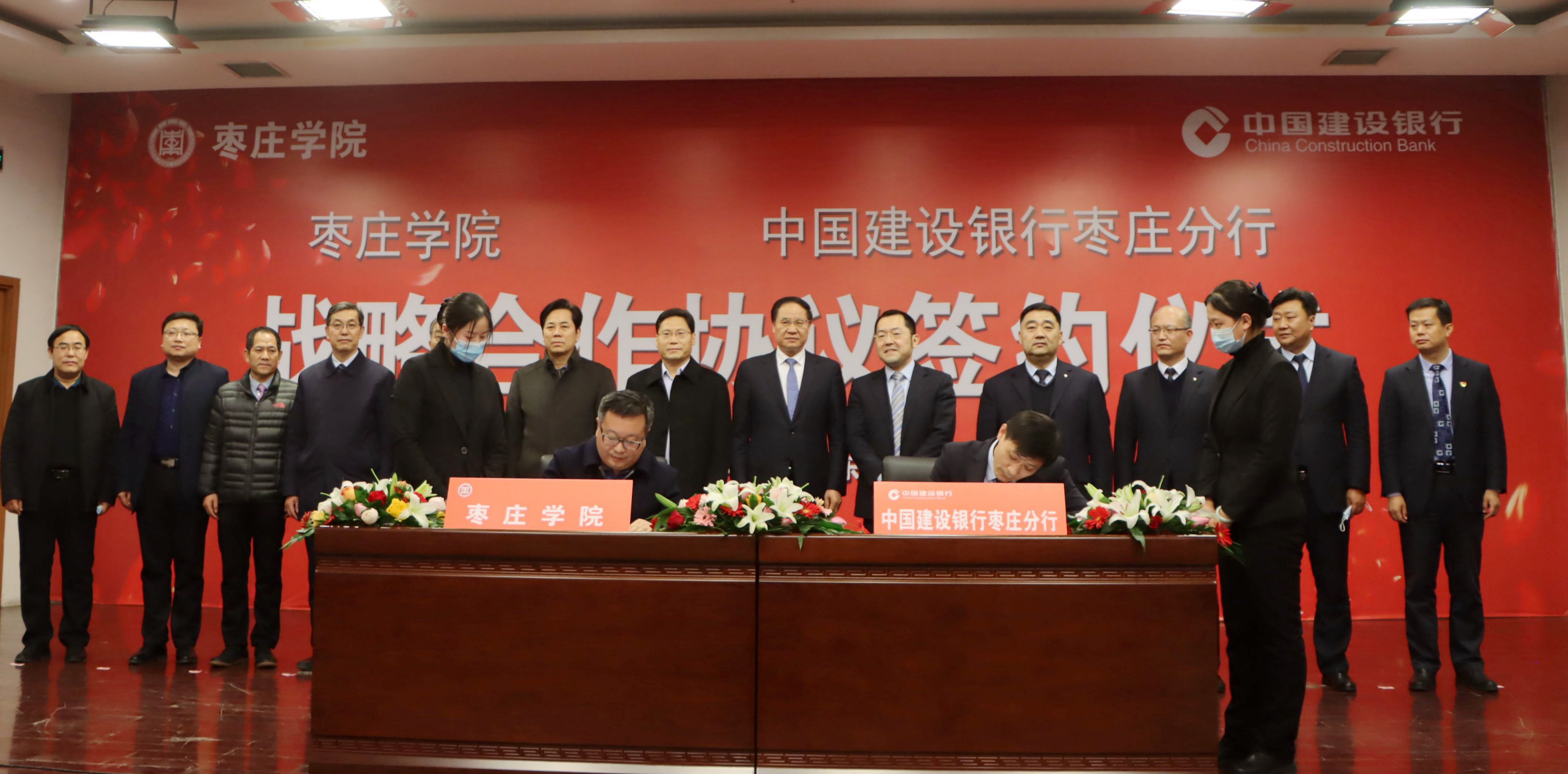 1月27日下午,永利官网与中国建设银行枣庄分行签署战略合作协议,签约仪式在该行三楼会议室举行。校党委副书记、校长李文喜,党委委员、副校长丰雷,中国建设银行枣庄分行党委书记、行长崔震,党委副书记、副行长孙中会出席仪式。校办公室、 政策法制处、学生工作处、计划财务处、后勤服务处、合作发展处、网络中心等部门负责人,中国建设银行枣庄分行党委委员、副行长张守义、陈勇,高级客户经理丛方忠,营业部主任李峰等部门负责人参加活动。仪式由张守义主持。