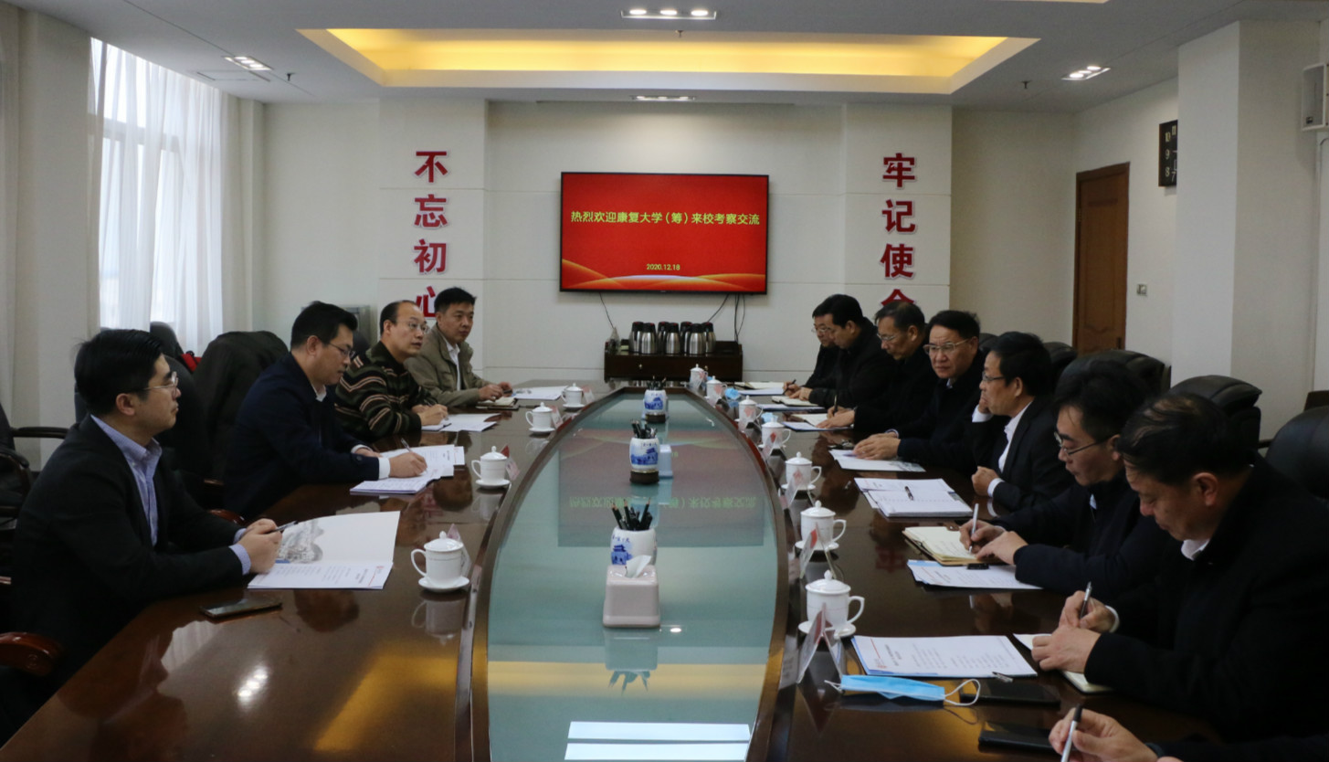 12月18日上午,康复大学(筹)领导小组成员、临时党委委员黄飞一行4人来校考察,就特色办学、人才引进、新校区建设等方面工作与永利官网进行交流探讨,校党委书记曹胜强、校长李文喜、副校长明清河在综合楼接待室会见了黄飞一行。
