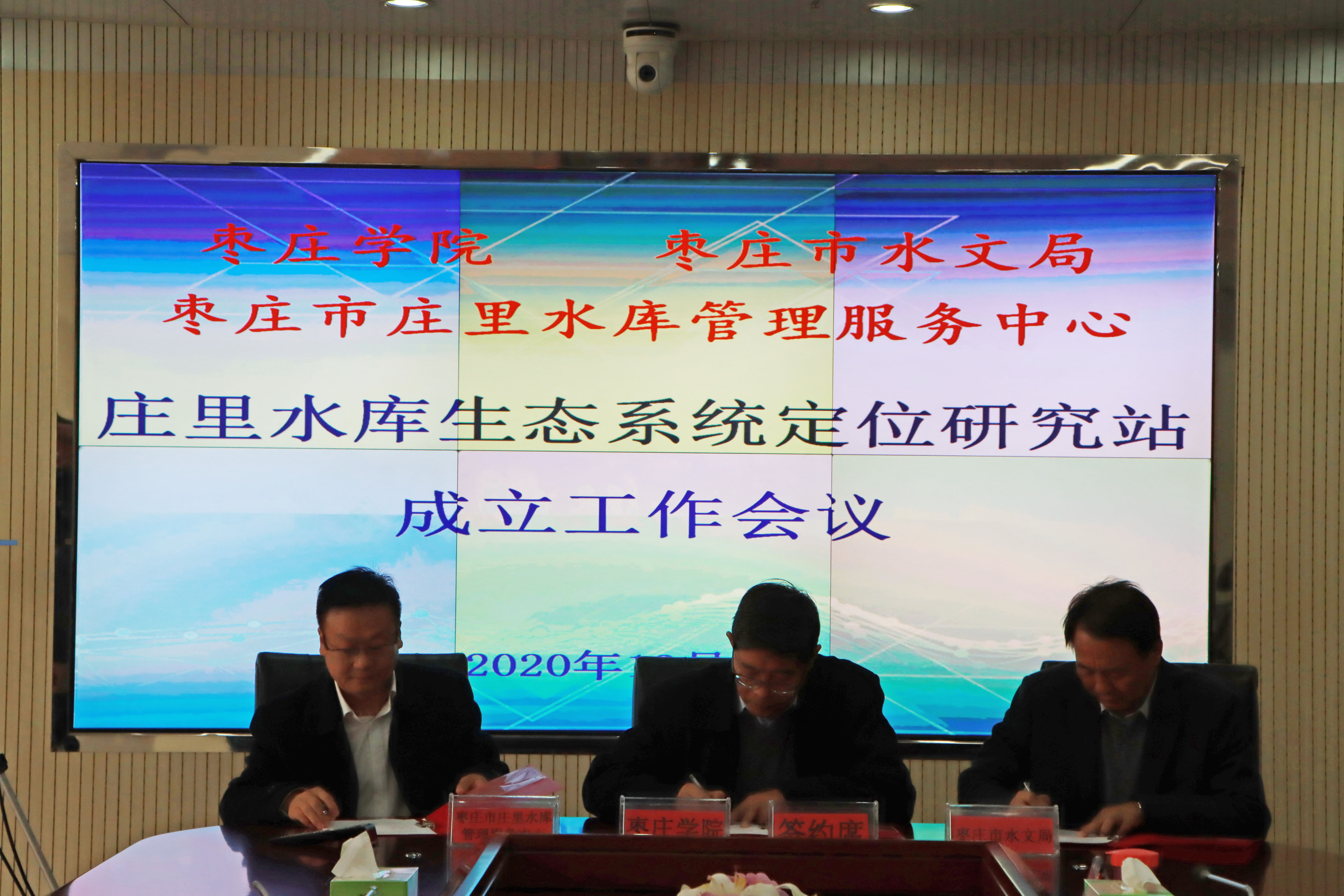 为进一步推进产学研合作,增强学校服务地方能力,12月1日上午,永利总站ylzz55、枣庄市水文局及枣庄市庄里水库管理服务中心共建“枣庄市庄里水库生态系统定位研究站”合作协议签约暨揭牌仪式在枣庄市水文局四楼会议室举行。校长李文喜、副校长李丽清,枣庄市人民政府副市长周宗安,市政府副秘书长韩惊涛,市城乡水务局局长、二级巡视员闫维松,市水文局局长马世湖出席会议。永利官网科技处负责人,生命科学学院院长王洪凯及部分教师代表,市庄里水库管理服务中心副主任刘军,市水文局研究站工作组部分成员参加活动。会议由韩惊涛主持。