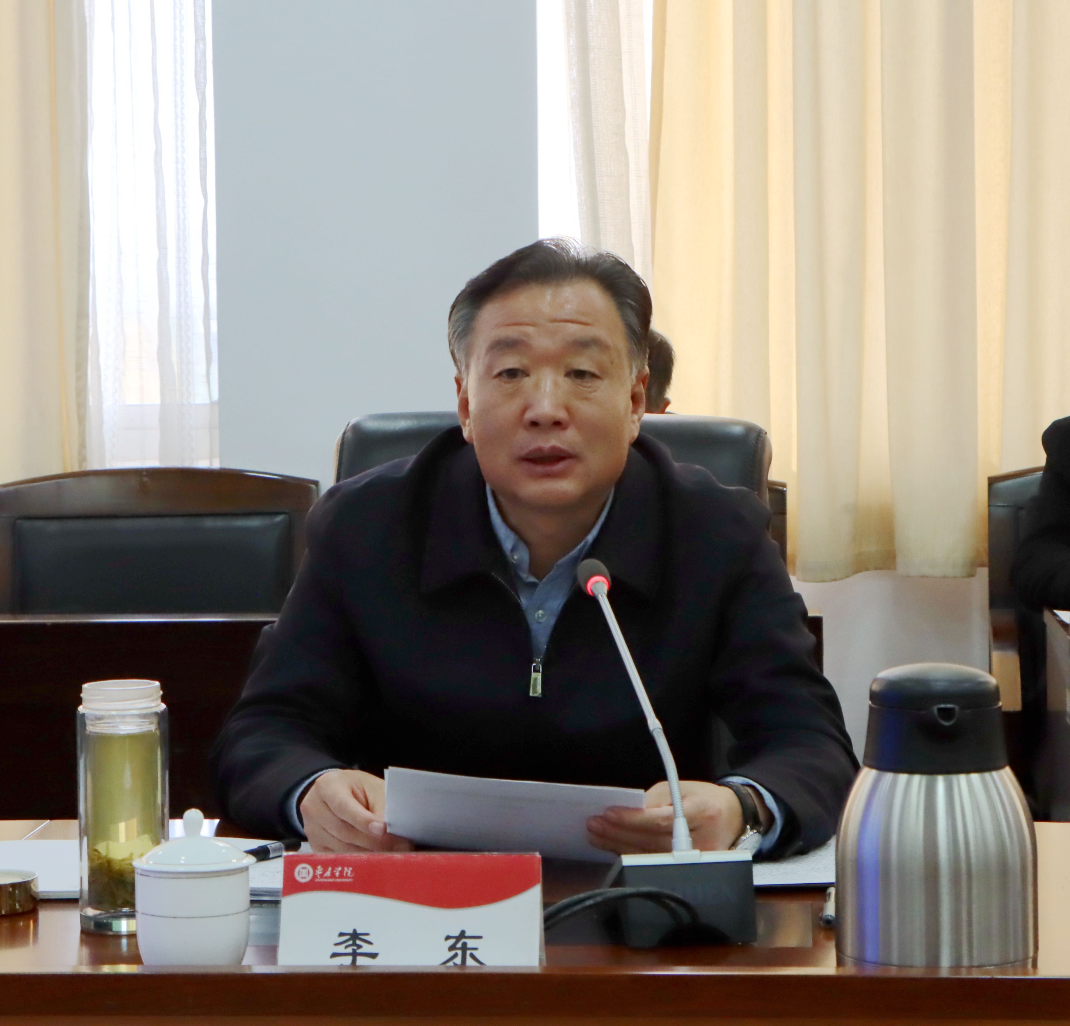 李东就全面推动学校“十四五”规划编制工作落实,提出三点意见:一要统一思想、提高认识,认真学习领会党的十九届五中全会精神。编制“十四五”发展规划,要以习近平新时代中国特色社会主义思想为指导,深入学习贯彻党的十九届五中全会精神,准确把握党中央关于“十四五”发展规划和二〇三五远景目标的部署要求,把十九届五中全会精神的新思想、新理念贯穿于学校“十四五”发展规划编制的全过程,让“十四五”发展规划真正成为贯彻落实党中央精神和习近平总书记对高等教育殷切希望的路线图和任务书。二要突出重点、科学谋划,切实提高“十四五”规划编制的科学性、前瞻性和可操作性。各部门单位要聚焦重点,在全面梳理学校发展的重大问题、主要矛盾等基础上,进一步明确“十四五”发展建设重点,紧密结合学校转型发展、硕士点申报、一流本科建设等重大机遇,凝练办学特色,增强核心竞争力,做到聚焦聚力、有的放矢;全面提升规划编制的质量和水平,注重对标对表,不断优化发展规划编制的指标和要素。三要加强领导、强化沟通,着力加快“十四五”规划编制工作进度。各部门各单位要建立健全工作协调协同机制, 既注重分工又要强化配合,充分调动各方面资源,形成联动效应和规划合力;发展规划处作为牵头部门,要切实做好发展规划编制的组织协调和督促检查工作;各部门各单位要紧扣时间节点,制订好本单位规划编制的时间表,确保整个规划编制工作有序进行和按时完成,为全面提升学校的办学水平和质量、实现学校既定的发展目标提供有力支撑。
