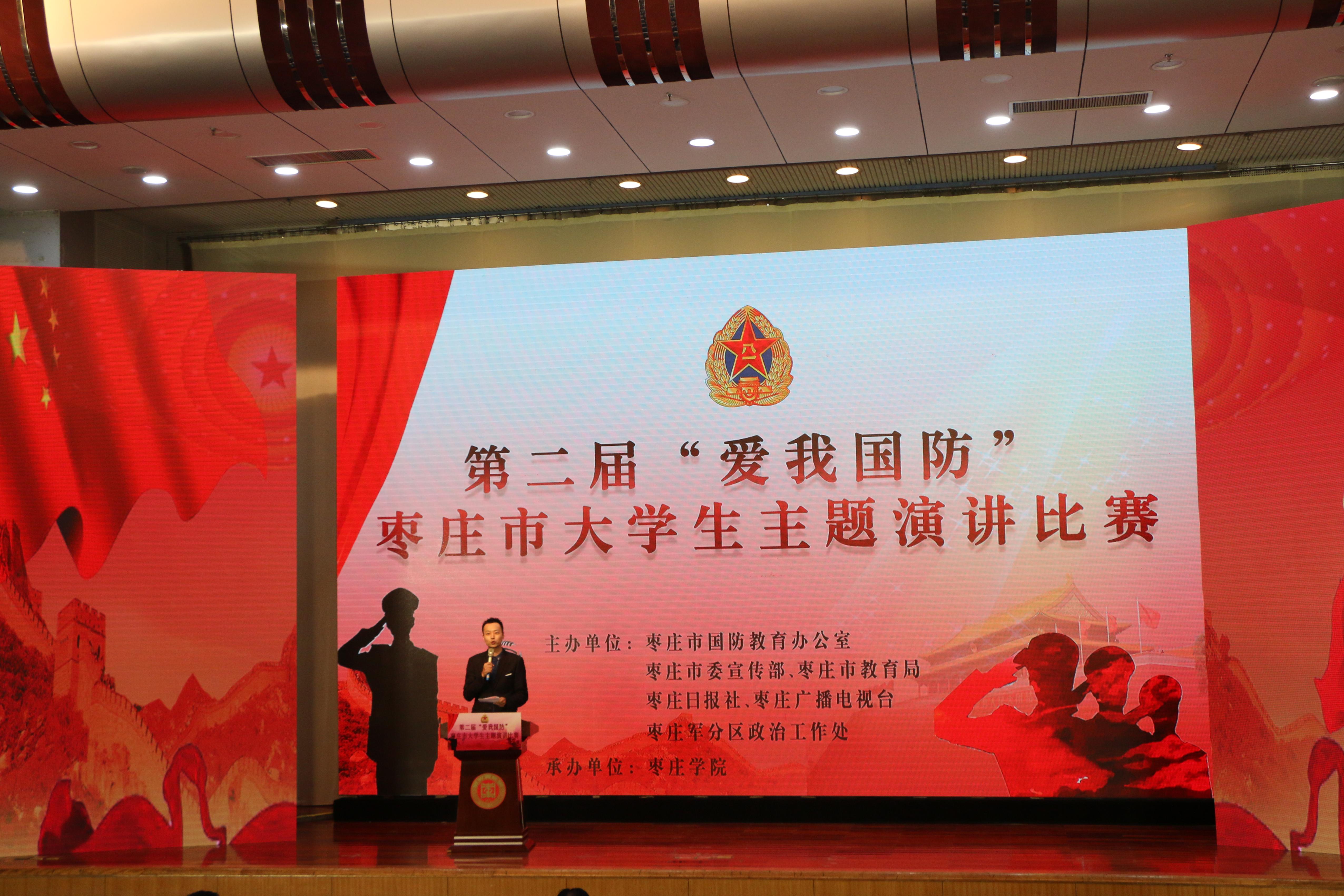 10月23日下午,第二届“爱我国防”枣庄市大学生主题演讲比赛在永利官网综合楼报告厅举行。本次比赛由枣庄市国防教育办公室、枣庄市委宣传部、枣庄市教育局、枣庄日报社、枣庄广播电视台、枣庄军分区政治工作处主办,永利总站ylzz55承办。枣庄军分区司令王普照,校党委副书记曾宪明,校党委委员、宣传部部长张昌林,校党委委员、统战部部长林勇出席活动,学工处及主办单位相关部门负责人、部分学生代表参加活动。