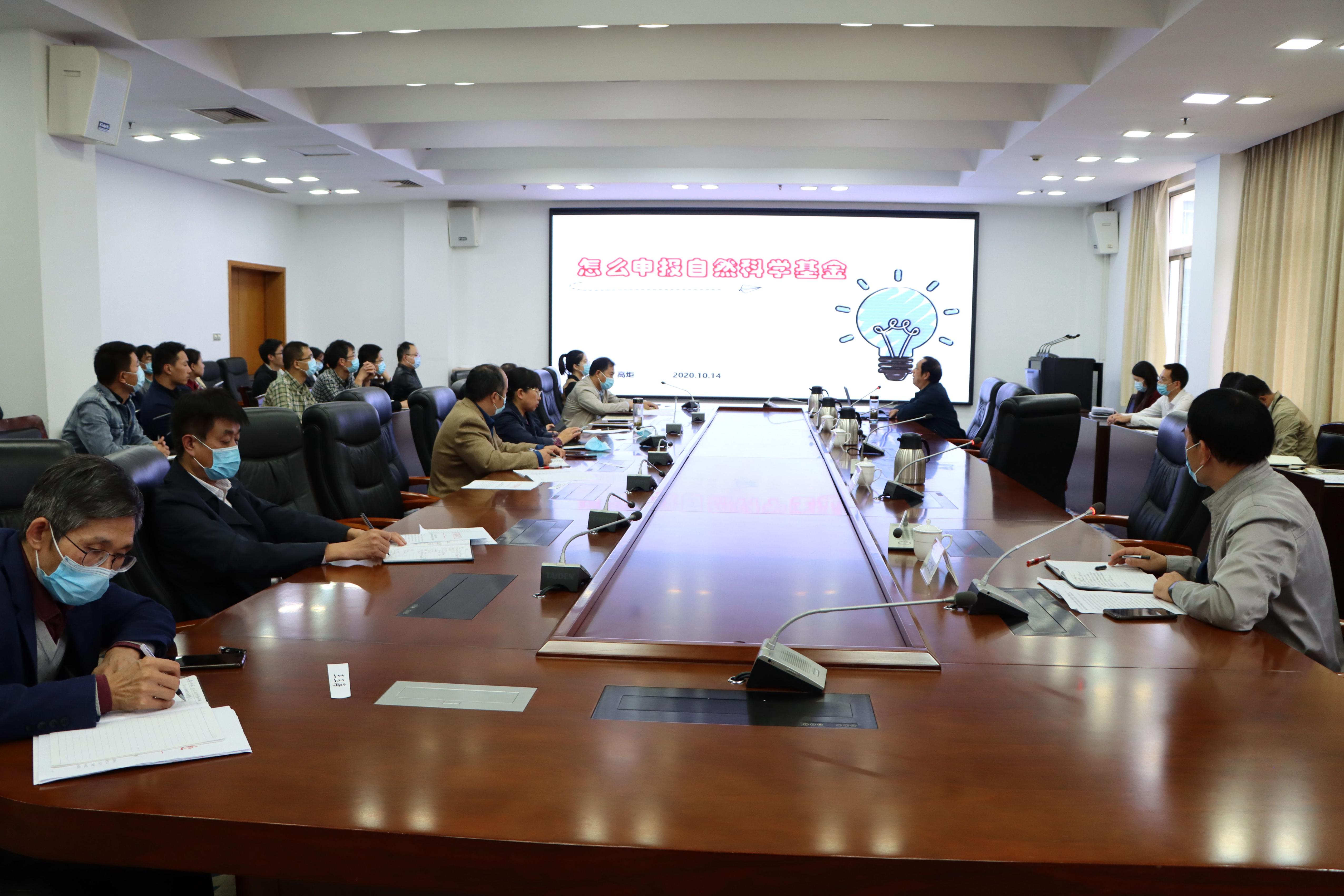 会议第二阶段为专家辅导报告,报告会由科技处负责人伊文涛主持。国家级人才高炬教授作2021年国家自然科学基金申报辅导报告。高教授围绕如何申报自然科学基金,从“基金项目的评审步骤”“挑选研究科题”“仔细选择关键词“等方面详细讲解了项目申报的要点和注意事项。