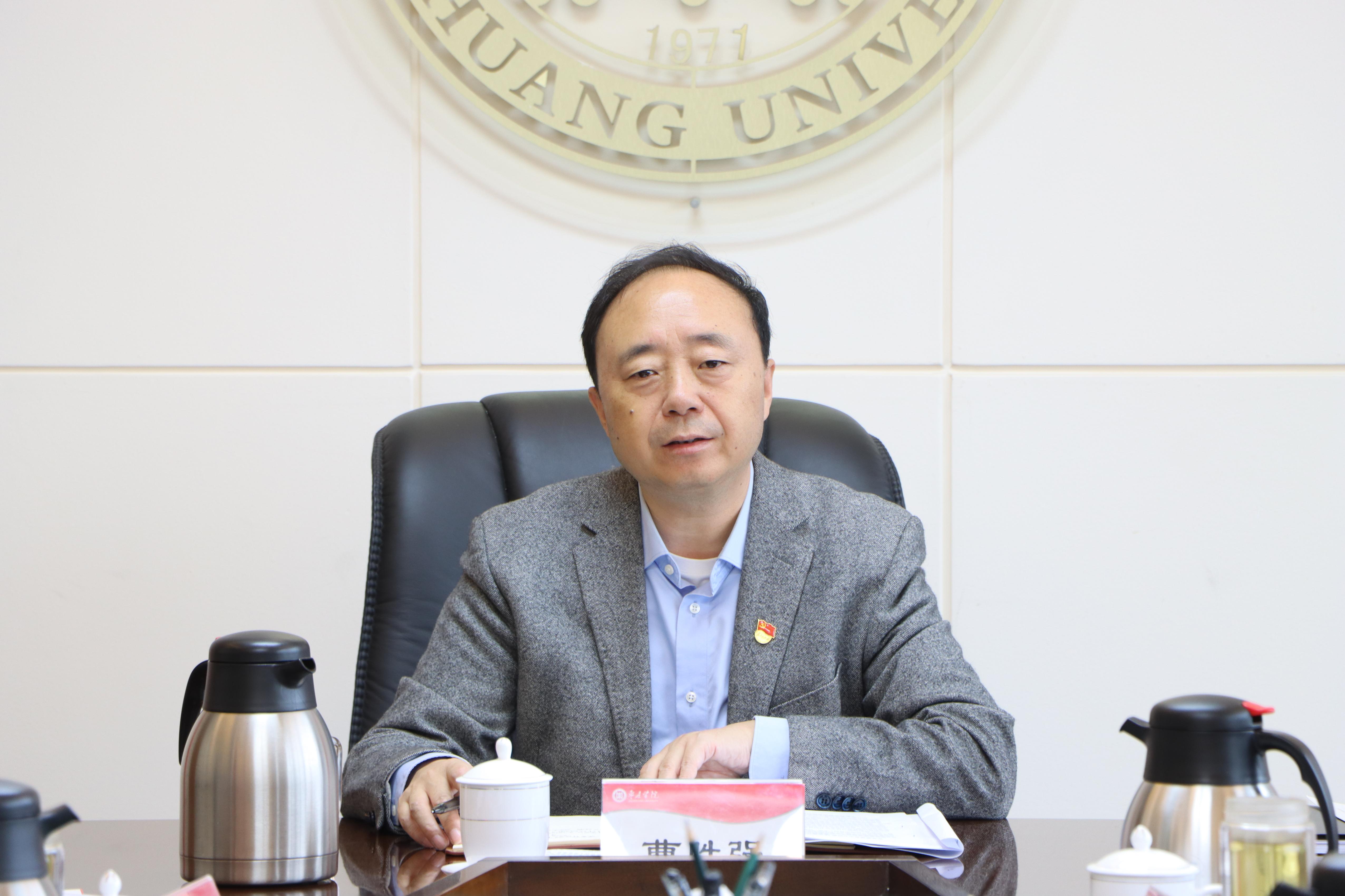 10月14日上午,校党委理论学习中心组在综合楼八楼会议室召开集体学习会议,集中学习研讨习近平总书记在2020年秋季学期中央党校(国家行政学院)中青年干部培训班开班式上的重要讲话精神。校党委书记曹胜强主持学习并讲话,校领导李东、曾宪明、明清河、李目海、李丽清、路绪剑、孙正、张昌林、林勇,纪委(监察专员办公室)、办公室等部门负责人参加学习。