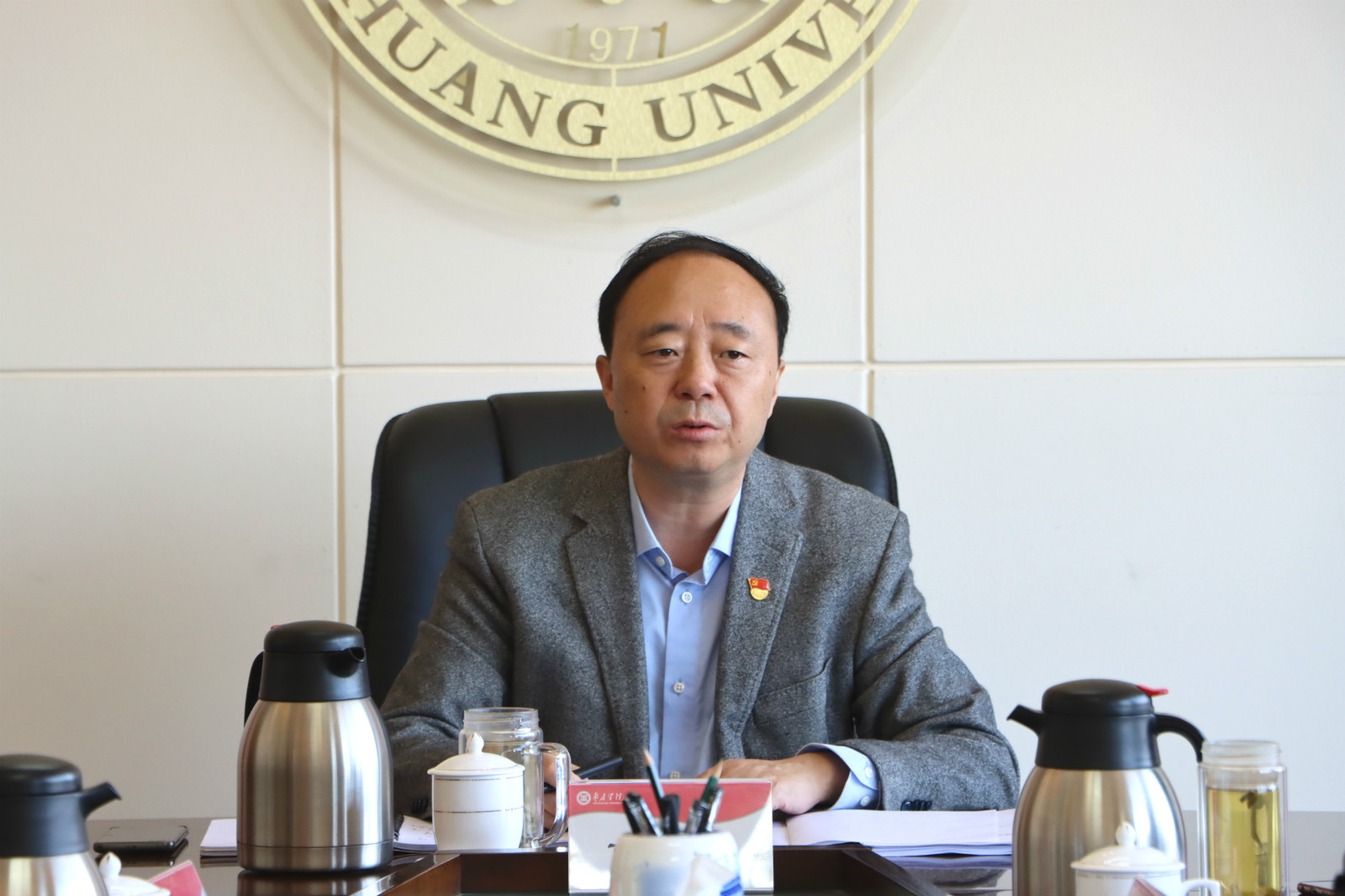 10月8日上午,校党委理论学习中心组在综合楼八楼会议室召开集体学习会议,集中学习习近平总书记在教育文化卫生体育领域专家代表座谈会上的讲话。校党委书记曹胜强主持学习并讲话,校领导李东、曾宪明、明清河、李目海、李丽清、路绪剑、孙正、张昌林、林勇,纪委(监察专员办公室)、办公室、人事处、教务处、发展规划处、科技处、国际交流合作处、实验室管理处、网络中心等部门负责人参加学习。