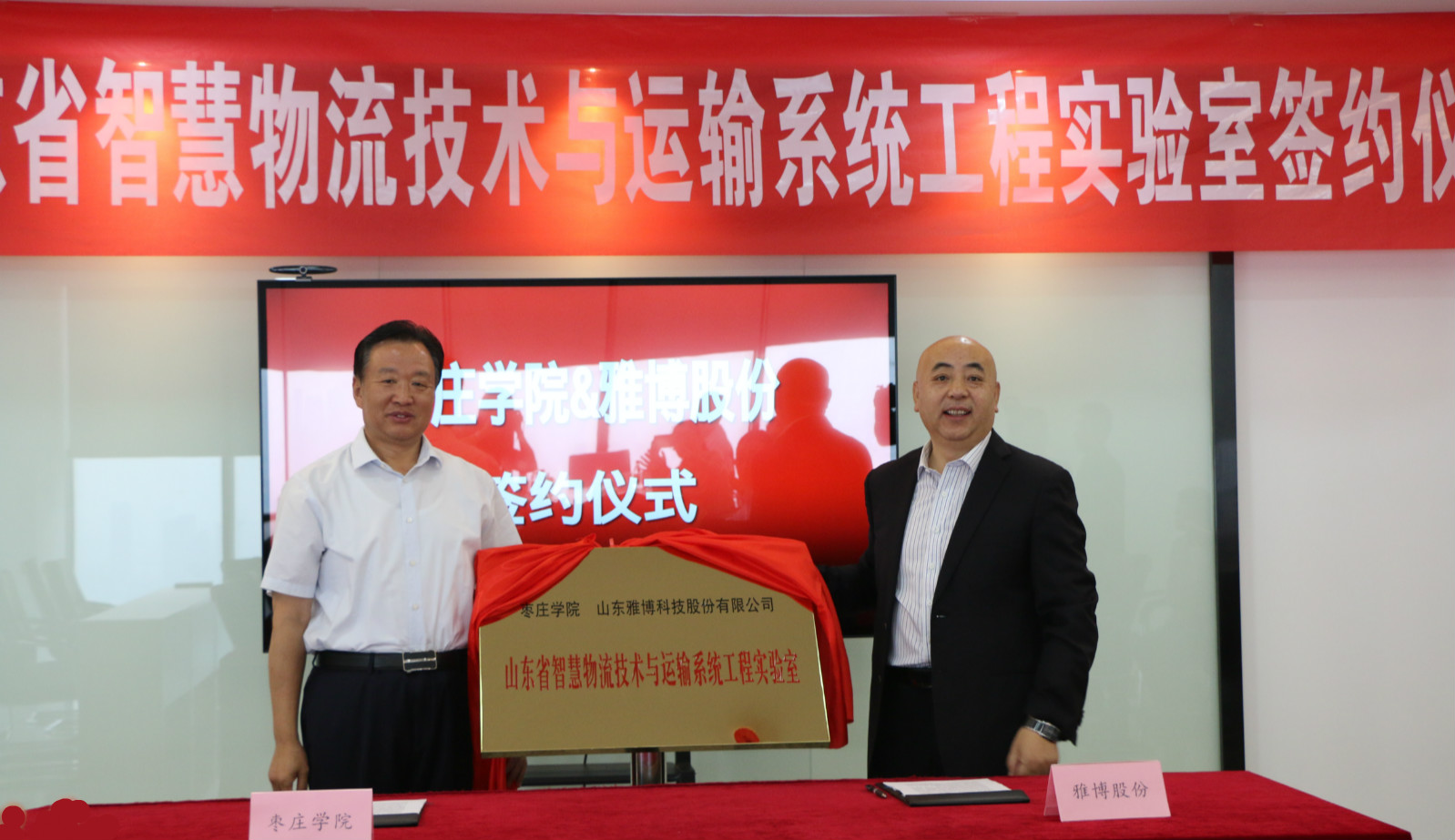 李东与唐继勇共同为“永利总站ylzz55 山东雅博科技股份有限公司山东省智慧物流技术与运输系统工程实验室”揭牌。