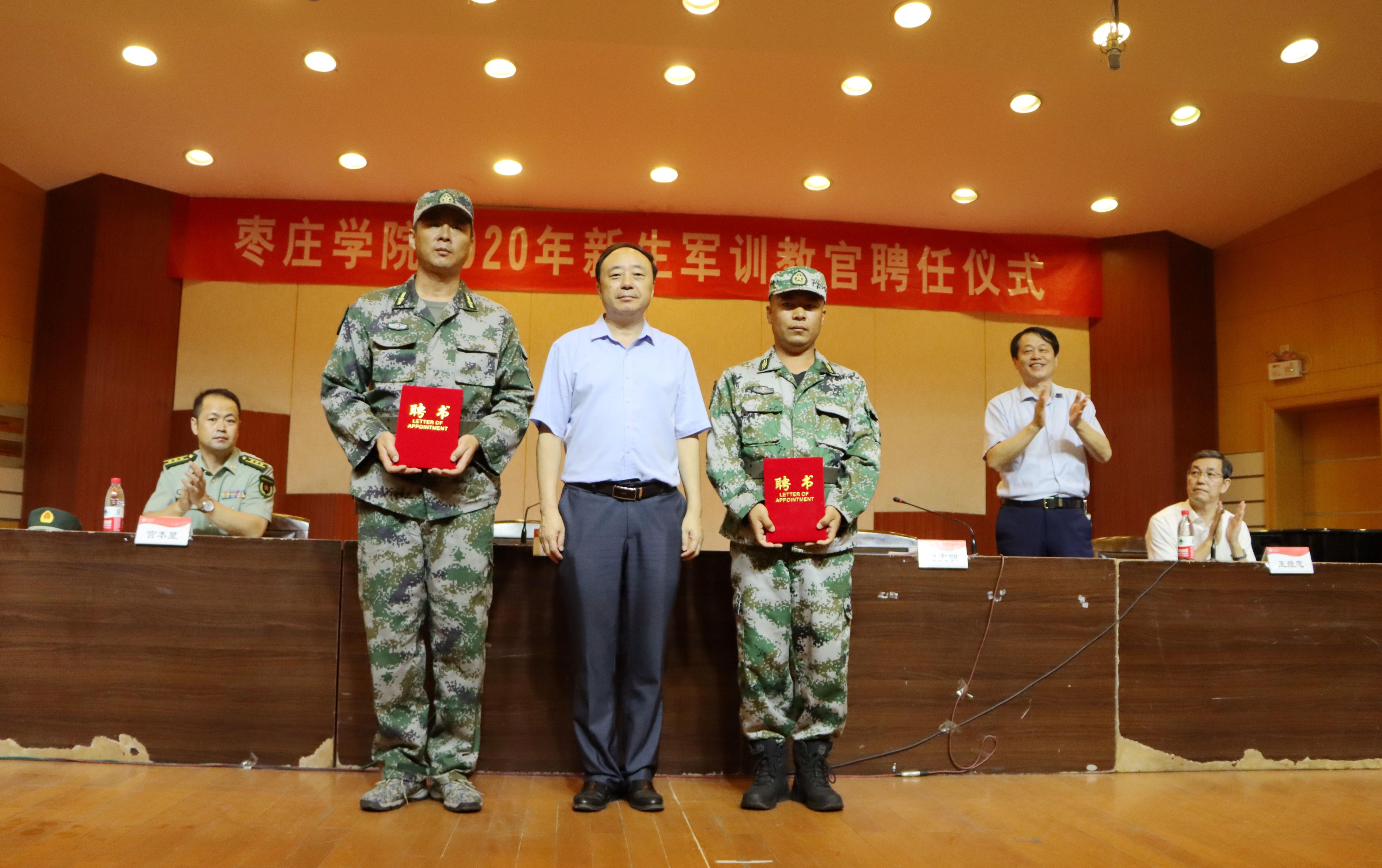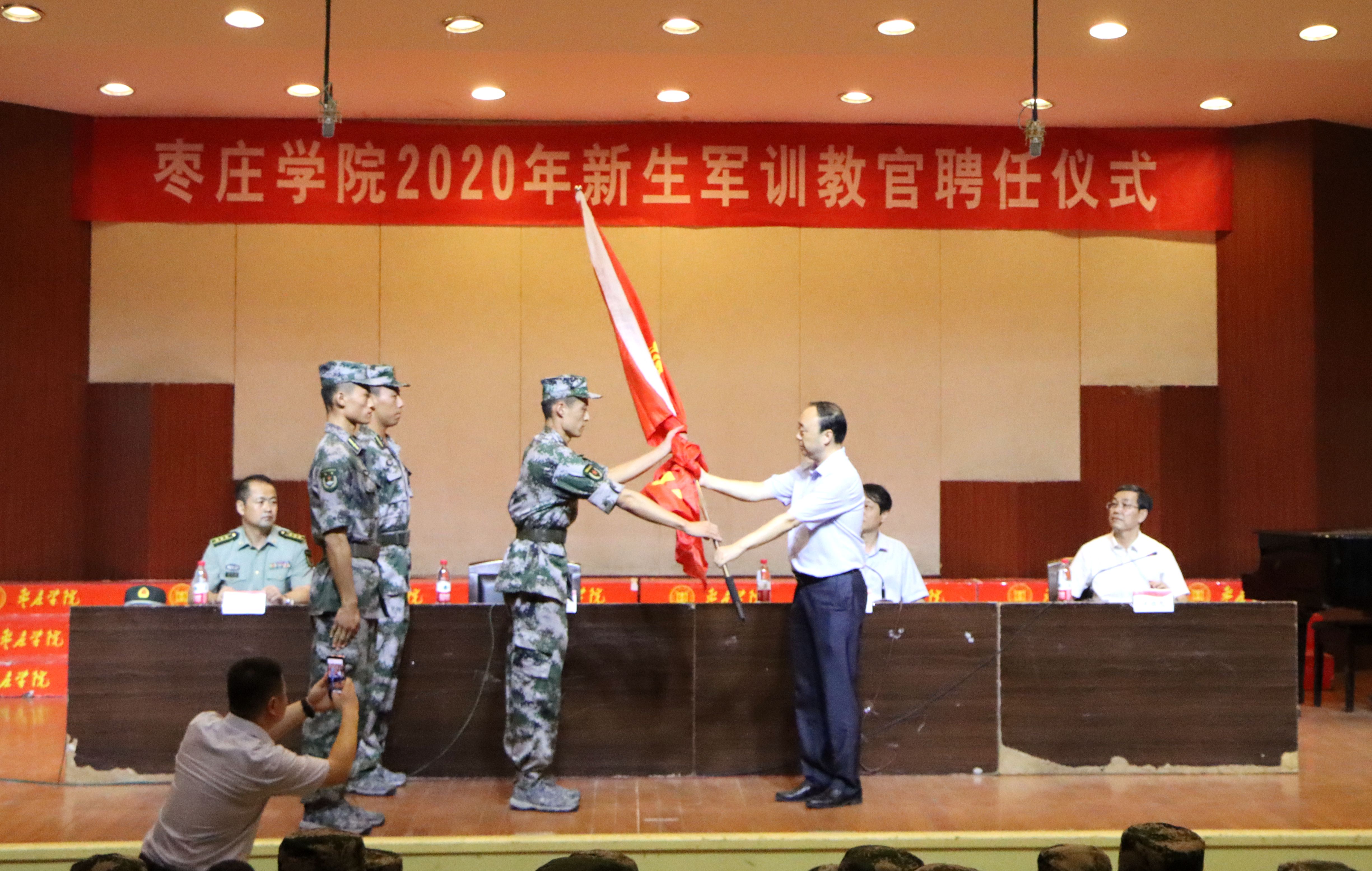 9月21日下午,永利官网在音乐厅举行2020级新生军训教官聘任仪式。校党委书记曹胜强、党委副书记曾宪明、市中区人武部政委宫本星出席仪式。学校武装部部长、2020级大学生军训团各营营长和全体2020级新生教官参加仪式。聘任仪式由曾宪明主持。