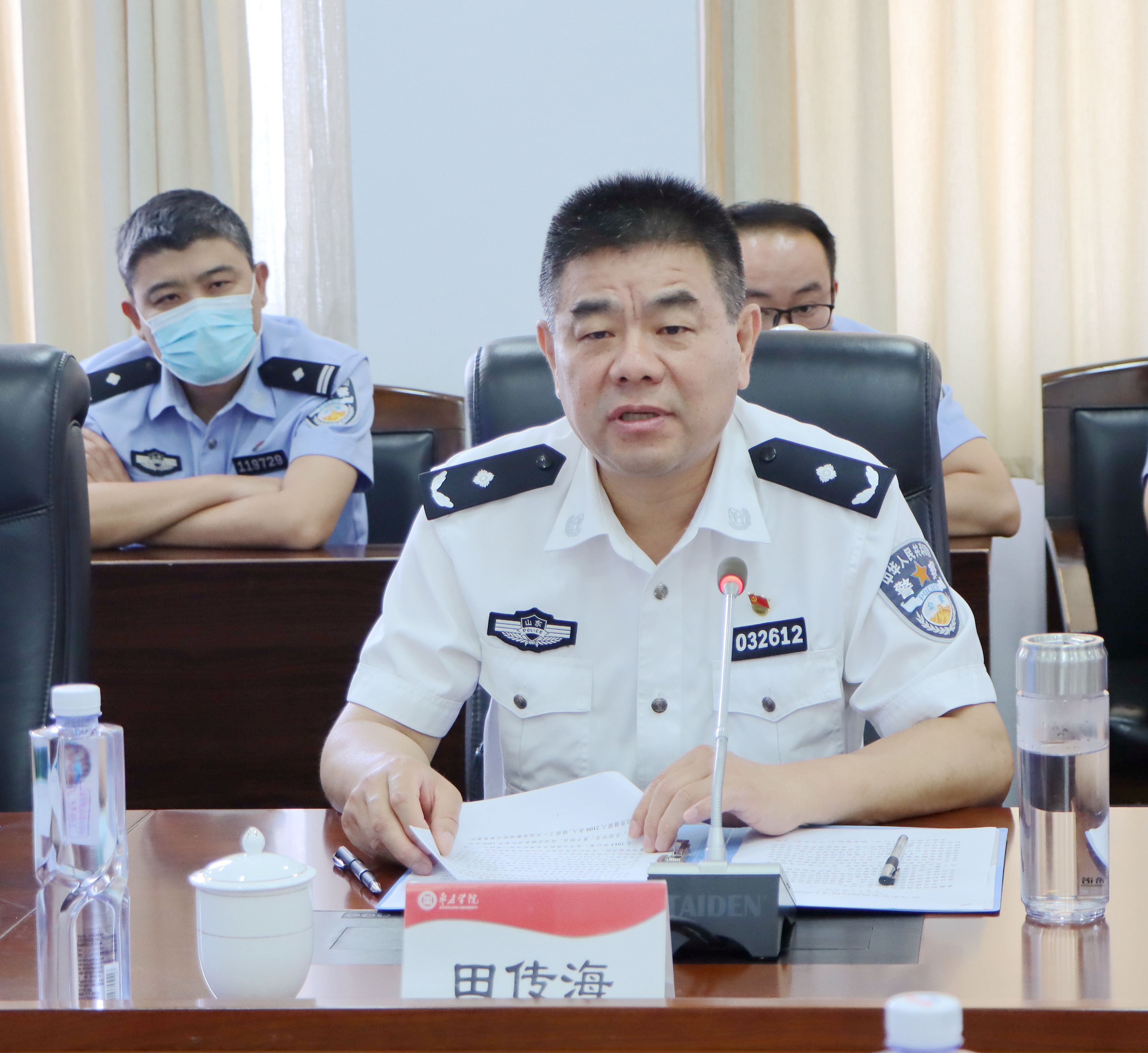 仪式上,曹胜强从办学历史、办学条件、办学规模、办学定位、人才引进和师资队伍等方面简要介绍了学校的基本情况。曹胜强指出,近年来,学校以建设“国内知名的高水平应用型大学”为奋斗目标,积极推进向应用型大学转型发展,转型发展的成绩获得了教育部高度认可和国内众多高校的普遍认同;学校不断深化“产教融合、协同育人”应用型人才培养模式改革,努力培养高素质应用型人才,产教融合、校企合作走在了全国前列。曹胜强表示,在枣庄市委市政府的大力支持下,特别是校园安全建设方面在枣庄市公安局的大力支持帮助下,学校各项事业取得了长足发展,服务地方的科研能力和水平得到大幅提升。曹胜强强调,枣庄公安机关高度重视科研项目建设和科技手段应用,在打击违法犯罪、维护全市安全稳定上作出了巨大贡献,与市公安局签署战略合作协议既是学校实战化办学的再延续,也是双方友好合作关系的再拓展。今后,学校将按照合作协议,充分发挥在科技、人才等方面的优势,加大与枣庄市公安局的合作力度,确保双方合作稳步推进,取得实效,为地方安全稳定工作做出应有贡献。