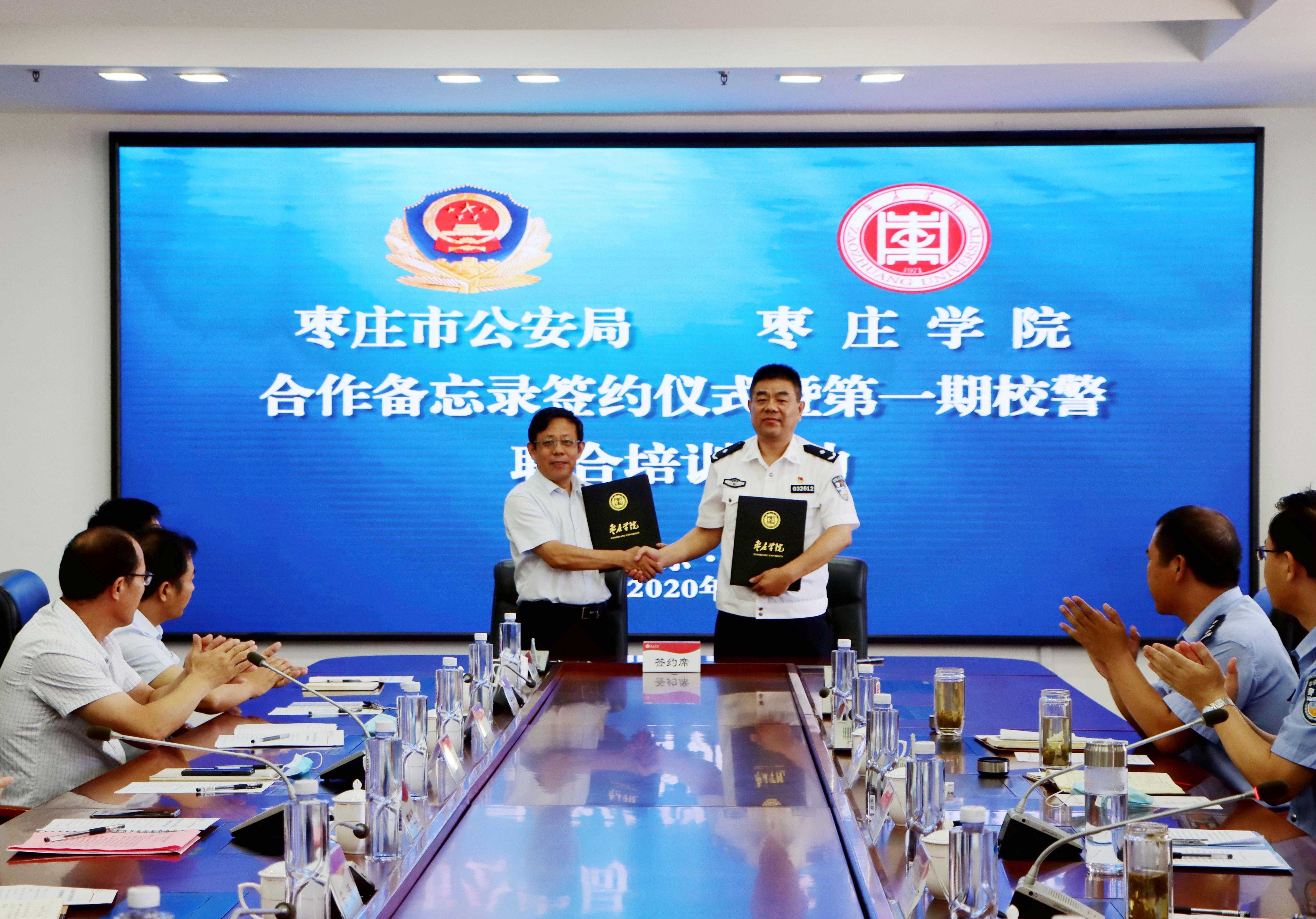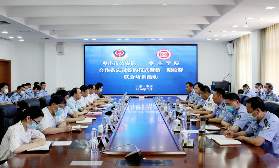7月24日上午,枣庄市公安局与永利总站ylzz55合作备忘录签约仪式暨第一期校警联合培训活动在永利官网综合楼三楼会议室举行,校党委书记曹胜强、副校长明清河,枣庄市公安局党委委员、副局长田传海出席活动,永利官网教务处、保卫处负责人,食品科学与制药工程学院院长、副院长及部分专任教师,食药环侦支队、森警支队支队长及支队全体同志,各分(市)局食药环侦大队负责同志,食药环侦及森警大队业务骨干参加活动。会议由食药环侦支队支队长张继军主持。
