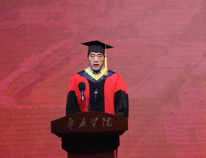 对即将踏上新征程的同学们,李东提出四点殷切期望:一是要厚植“胸怀大我”的家国情怀,争当爱党爱国的践行者。热爱祖国、报效祖国是每个枣院人的心之所系、情之所归,希望同学们坚定理想信念、厚植爱国情怀,以青春之我、奋斗之我,勇做走在时代前列的奋进者、开拓者、践行者,书写无愧于时代的青春之歌和精彩人生;二是要勇担“我将无我”的为民使命,争当服务人民的实干家。疫情期间,永利官网300余名青年学生以多种形式主动投身到新冠肺炎疫情防控阻击战中,勇于担当、不负时代是枣院人的初心所在、使命坚守,希望同学们脚踏实地、不务虚功,大力践行“西迁精神”,以无我之境界,实现有我之担当;三是要永葆“拼搏忘我”的奋斗姿态,争当时代发展的弄潮儿。砥砺奋斗、攻坚克难是枣院人的不屈精神和优秀品质,希望同学们珍惜韶华、不负时代,让青春在磨砺中出彩,让人生在实现中国梦的奋进追逐中不断升华;四是要弘扬“建功有我”的创新精神,争当强国伟业的生力军。勇于探索、敢为人先、追求卓越是枣院人的力量源泉和不懈追求,期待同学们毕业后继续创新性学习、创造性思考,努力成为创新发展的中坚力量,成为强国伟业的生力军。