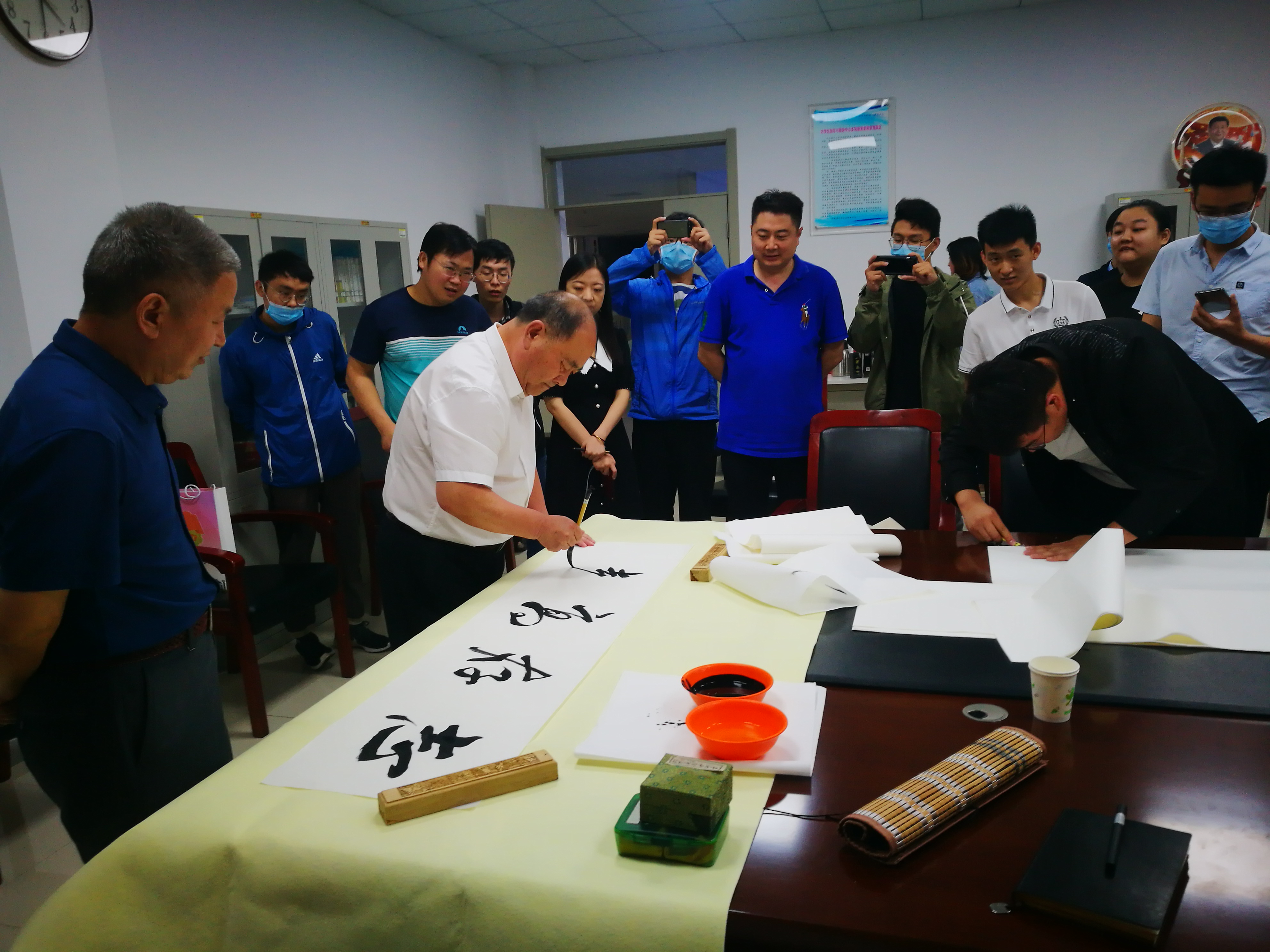 高庆喜在座谈中结合自己的人生经历和工作感悟,用朴实的语言表达了对学校和学生的感情,勉励祝福毕业生要志存高远、登高望远、行稳致远、幸福永远。邓兴珍则现场挥毫泼墨,为在场每一位毕业生书写毕业寄语。离退休同志还带来了关工委编辑的《红色故事选编》,赠送给现场的毕业生。