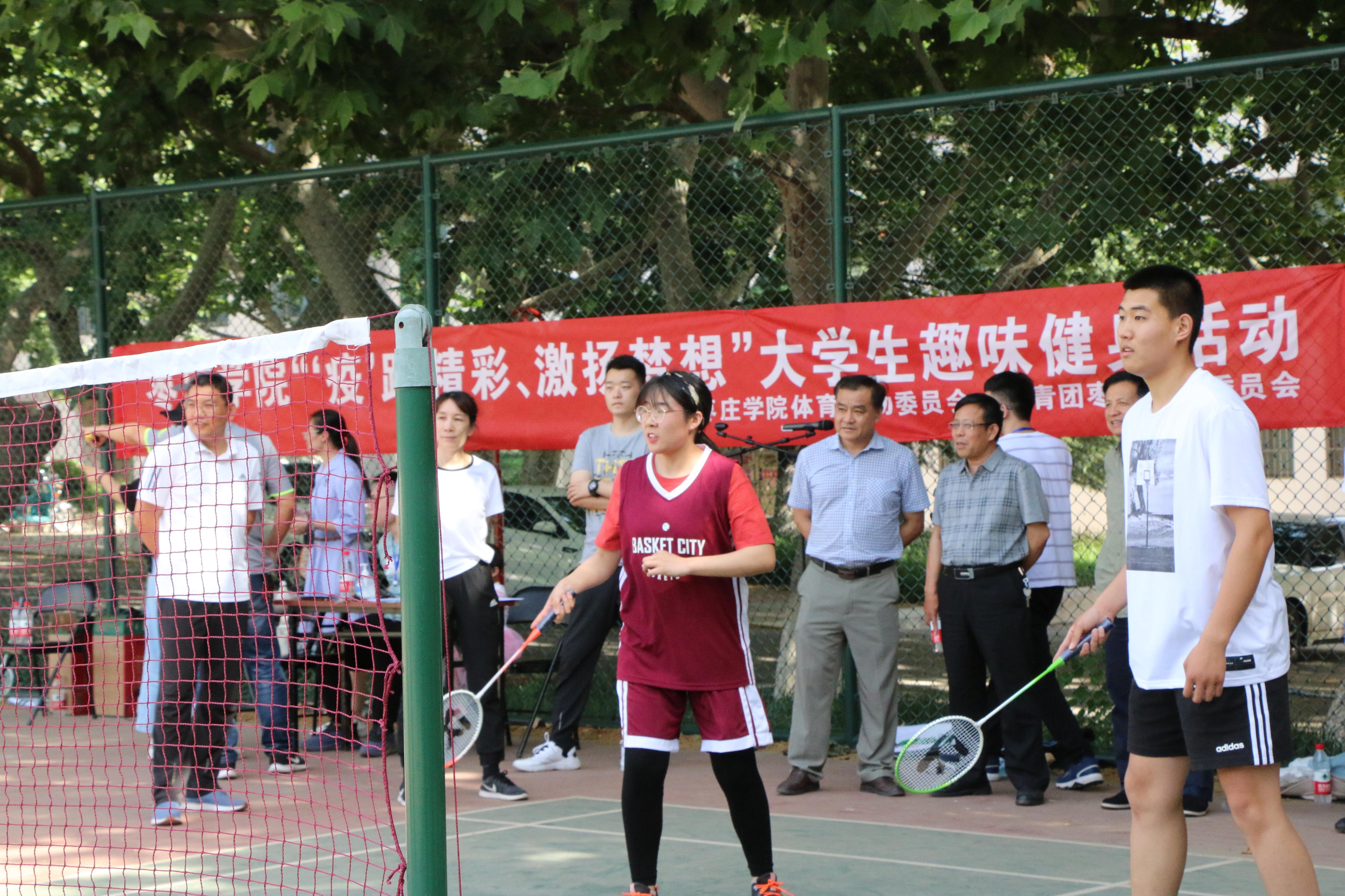 为丰富广大返校学生的体育文化生活,增强其健身意识,促进身心健康,6月3日下午,由永利总站ylzz55体育运动委员会与团委共同举办的大学生趣味健身活动在室外羽毛球场举行。副校长明清河、团委及体育学院负责人参加活动,来自各二级学院的14个代表队参加了比赛。