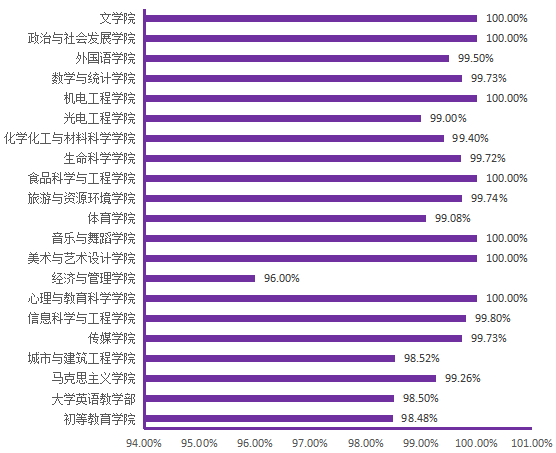 图6. 各院(部)6月1日线上学生上课率分布图