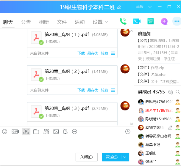 随着线上教学的深入开展,生命科学学院任课教师线上教学方式不断娴熟并多样化,如采用雨课堂+腾讯会议、智慧树、腾讯课堂、中国大学慕课平台等,并结合QQ群、微信群、钉钉等即时通讯工具组织网上教学和课后答疑,多举措确保线上教学质量。