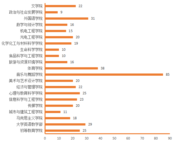 图4.各院(部)5月27日线上授课教师数(人次)分布图