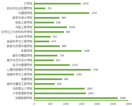 图5. 各院(部)5月27日线上授课学生数(人次)分布图