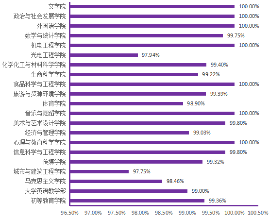 图6. 各院(部)5月27日线上学生上课率分布图