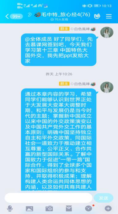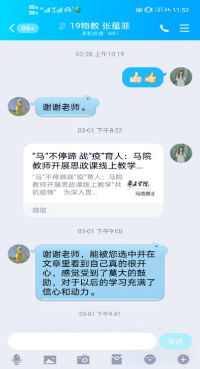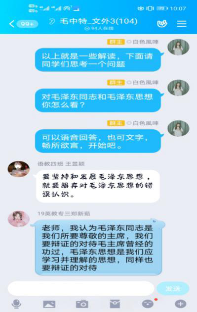 为做好疫情防控期间全校思政课教学工作,马克思主义学院全院思政课教师凝心聚力,加强沟通协调,强化技术培训,确保教学工作要求和教学质量标准不降低。本期我们将分享马克思主义学院毛特教研室傅秀云老师开展线上教学的典型做法。