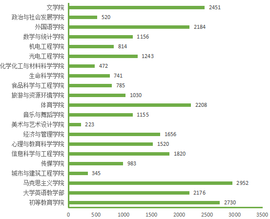 图5. 各院(部)5月29日线上授课学生数(人次)分布图