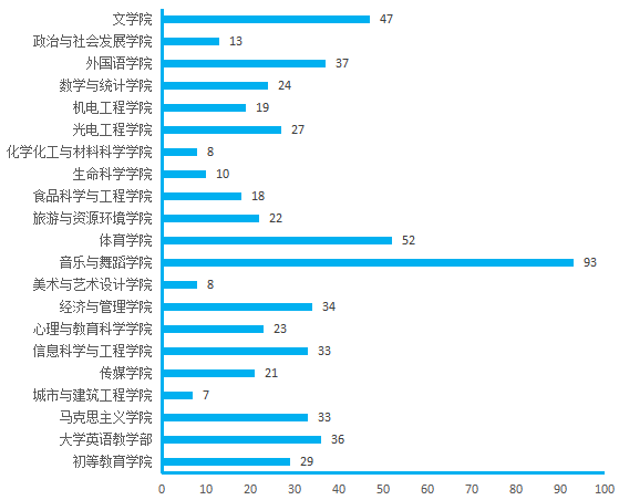 图4. 各院(部)5月29日线上授课教师数(人次)分布图