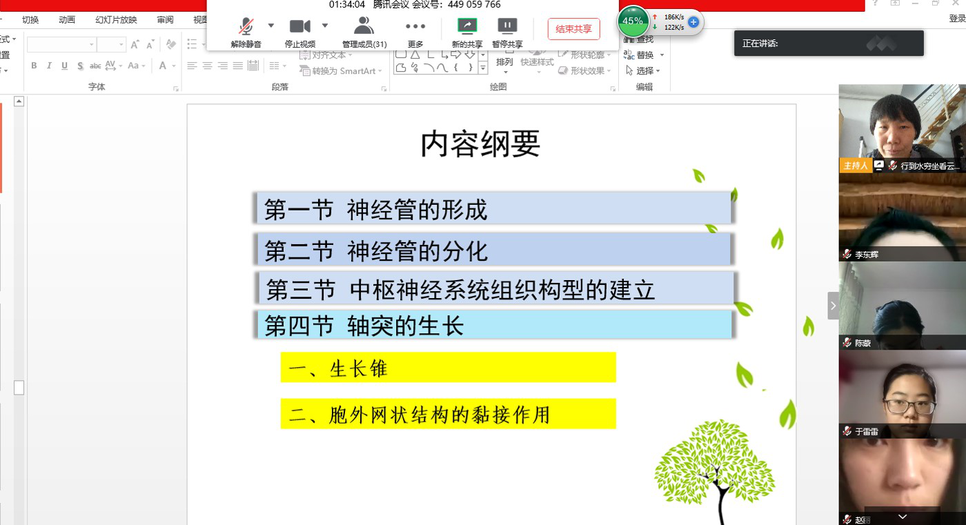 腾讯会议直播,依据反馈,讲解教学大纲的知识,可以提问,点名。腾讯会议开启视频,能带动学生线下听课的紧张感,帮助学生进入学习状态。
