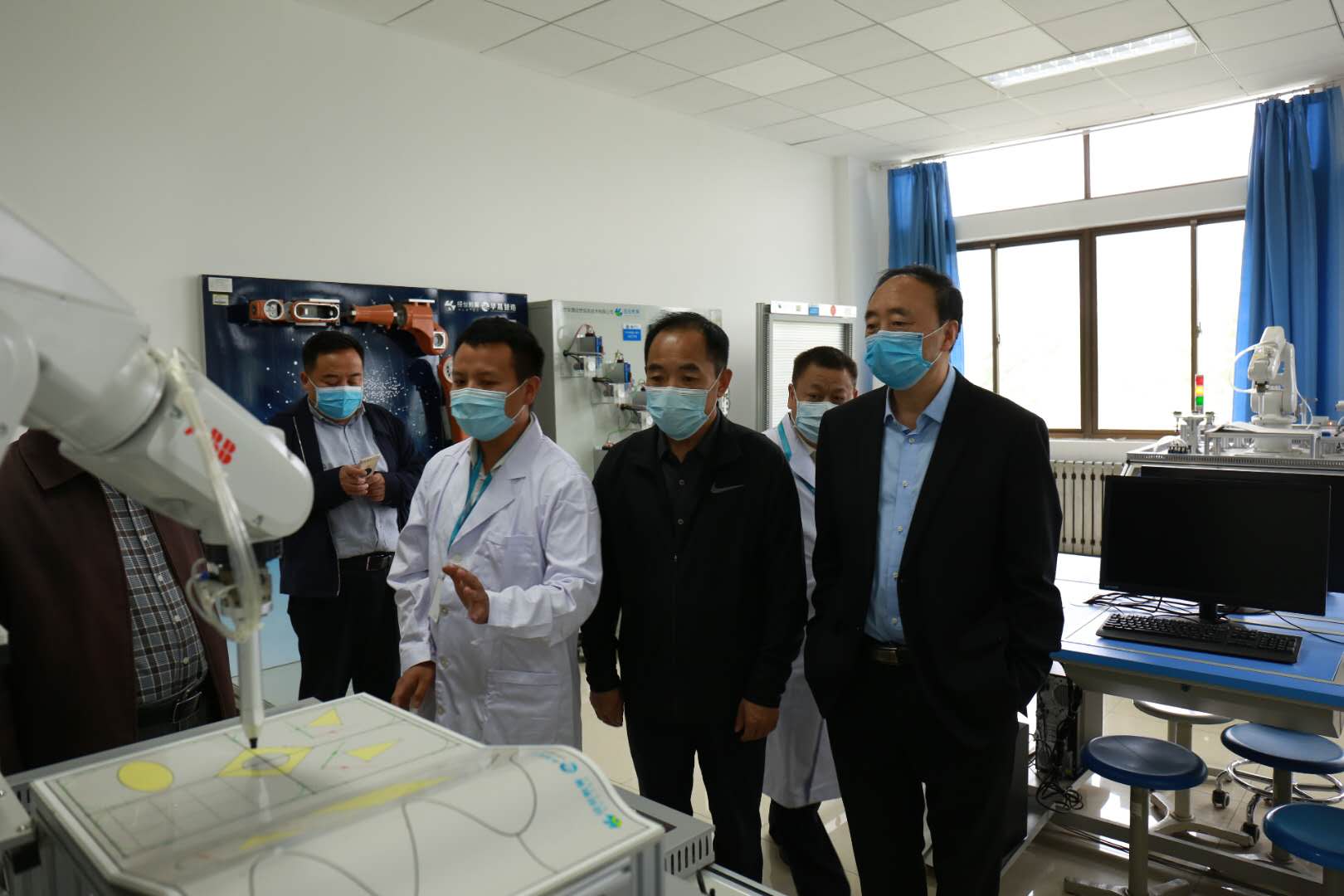 随后,在校领导曹胜强、明清河、李丽清陪同下,李进京一行先后参观了城市与建筑工程学院和机电工程学院的实验室,相关学院负责老师对实验室设备、功能及操作等进行了详细讲解和演示。
