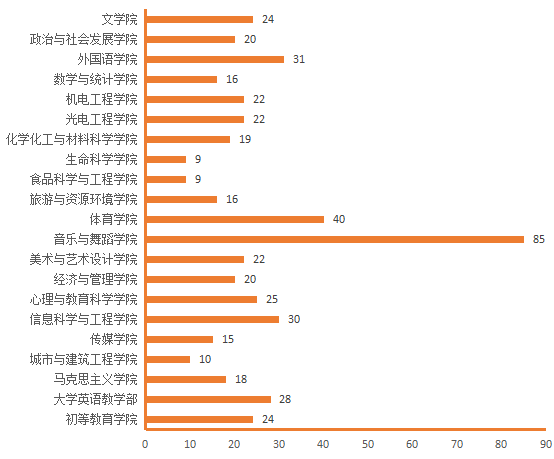 图4.各院(部)5月6日线上授课教师数(人次)分布图