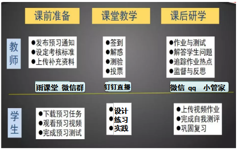 为了使学生在进行理论学习的同时,能更好的进行练习、实践,应用于幼儿园的实际教学。陈老师具体从课前、课中、课后三个环节来实施,最终实现线上教学师生互动有效,学生学习有效。具体如下: