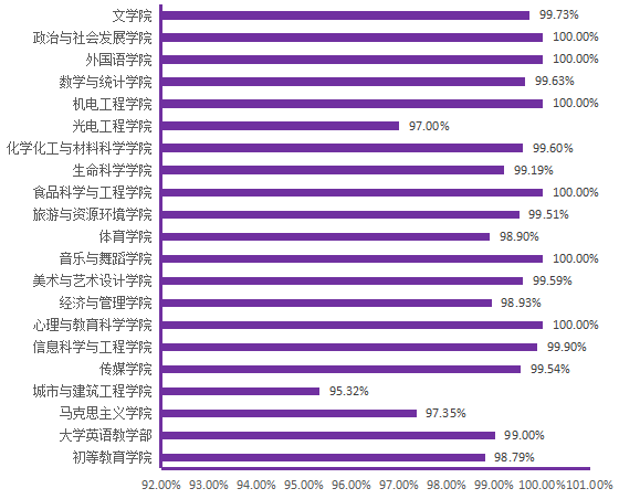 图6. 各院(部)5月6日线上学生上课率分布图