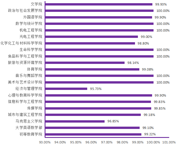 各院(部)的开课数、开课门次、班级数、教师数(人次)、学生数(人次)和学生上课率情况如下图所示:
