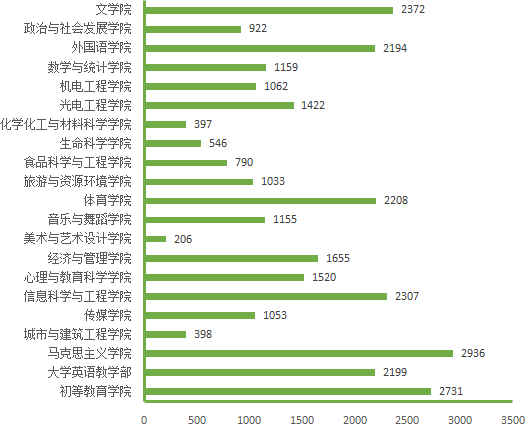 图5. 各院(部)4月24日线上授课学生数(人次)分布图