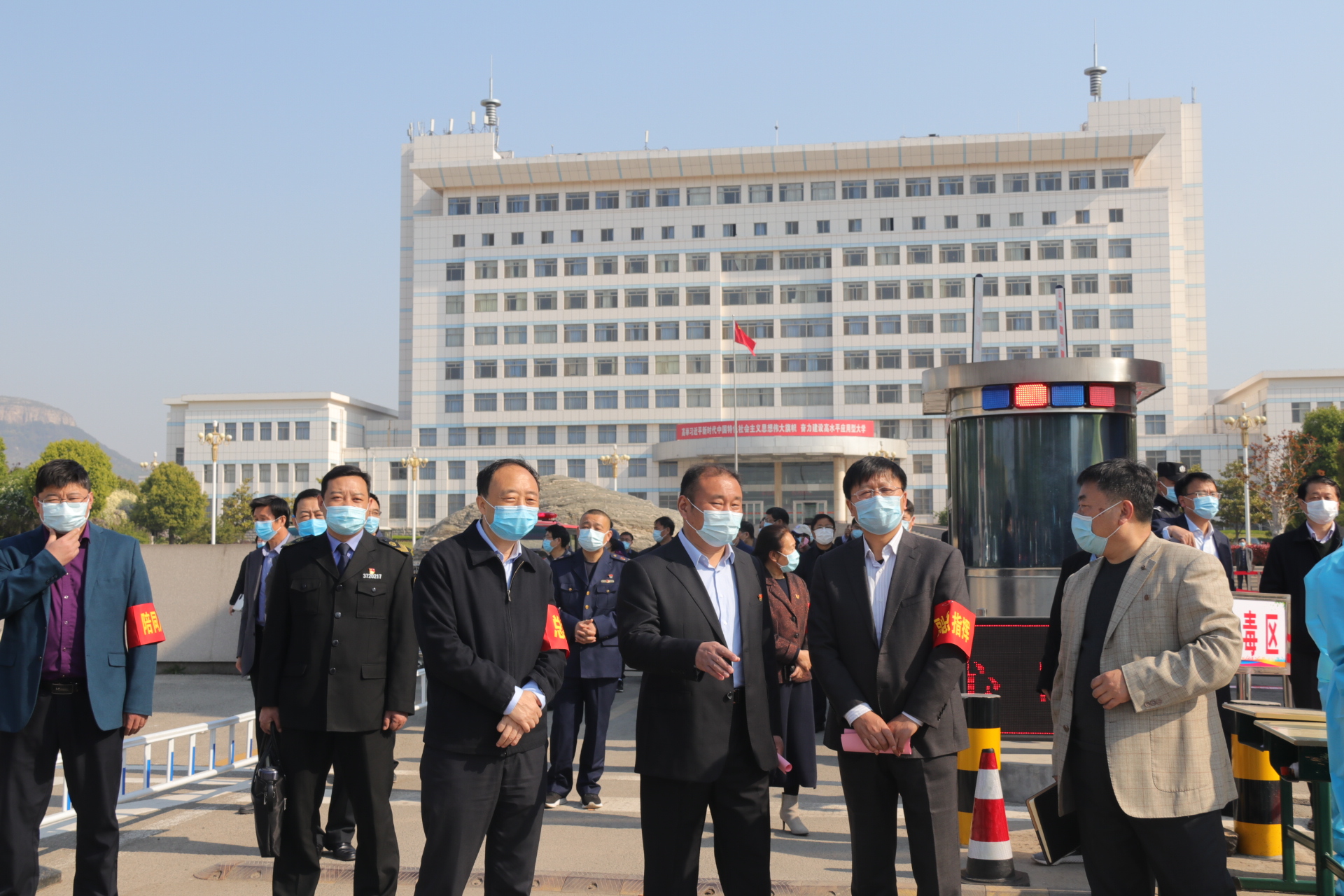 早上8:30,所有参加演习人员及观摩人员在综合楼前广场集合完毕,启动仪式正式开始。仪式由副校长李目海主持,校长李东作动员讲话。李东指出,今天的演练既是落实上级关于高校防控疫情工作的重要举措,也是为切实保障师生健康安全,充分做好开学后疫情防控和应急处置工作的一场模拟实战。为确保此次演练顺利开展,李东提出以下三点要求:一是全体参演人员要认真贯彻落实习近平总书记关于疫情防控工作的重要指示批示精神,始终把师生生命安全和身体健康放在首位,听从指挥,严肃对待,以最高的标准、最严的要求,保证演练活动高质量有次序进行。二是要强化抓落实、重实战。要坚持演练即实战的工作要求,突出“以演代练”“以练代战”,严格执行演练预案计划,真正把应急演练各项工作落实落细。三是要强化全覆盖、无遗漏。各工作组要对演练情况进行认真“复盘”,要把场景假设得更复杂些,细节考虑得更周全些,切实做到无死角全覆盖;要聚焦演练中暴露出来的问题和不足,反复推敲,细化方案,确保万无一失。