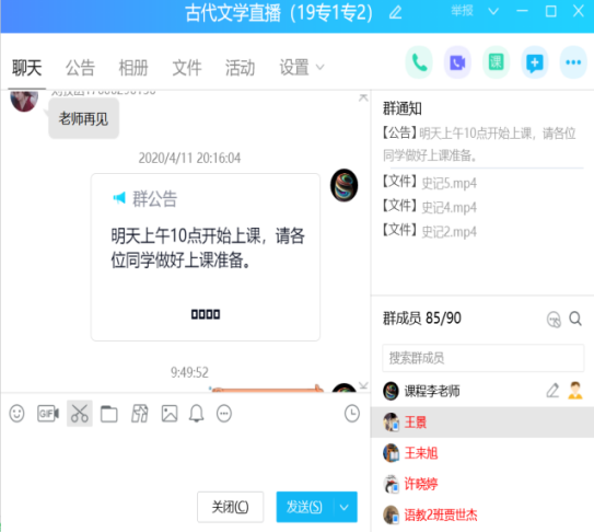 任课教师依托中国大学慕课、雨课堂、智慧树网等多个在线教学平台,并结合QQ群、微信群、钉钉等即时通讯工具组织网上教学和课后答疑,多举措确保线上教学质量。本期将分享文学院古代文学教研室李思华老师采用“微信群+QQ直播+录屏”网上混合模式开展在线教学的典型做法。