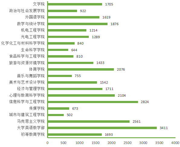 图5. 各院(部)4月21日线上授课学生数(人次)分布图