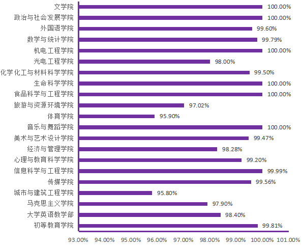 图6. 各院(部)4月21日线上学生上课率分布图