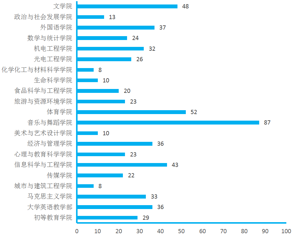 图4.各院(部)4月17日线上授课教师数(人次)分布图