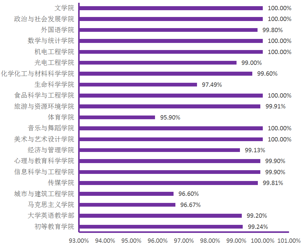 图6. 各院(部)4月17日线上学生上课率分布图