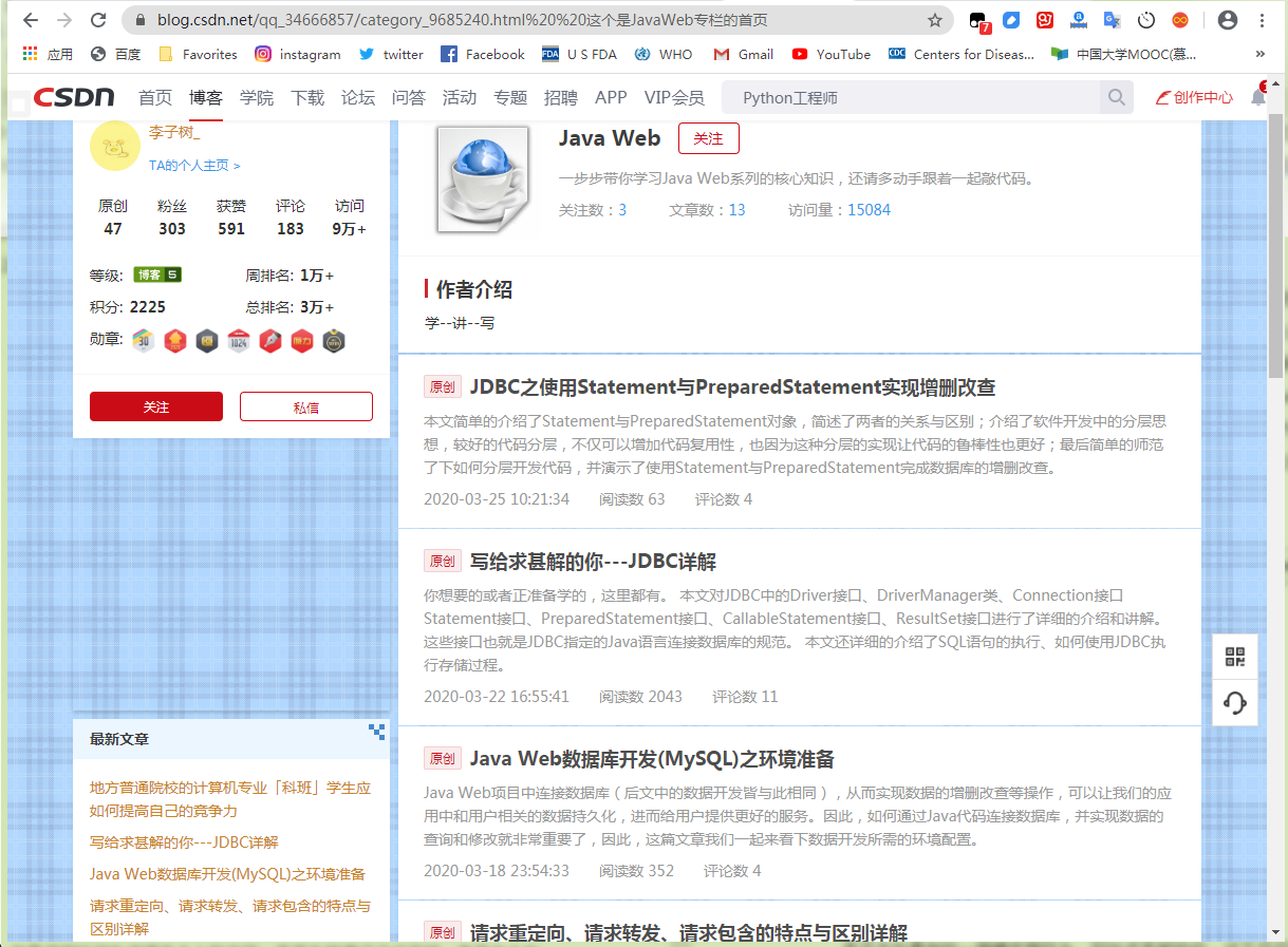 自开学以来,亚东老师关于《Java Web程序设计》课程所写的博客已经有13篇了,累计写下超过10万字,累计阅读量达到了15000次。