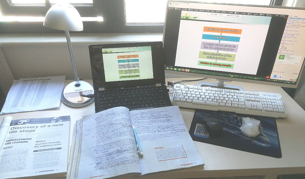 与此同时,在线上教学的备课中,考虑到有的学生没有电脑,无法同时听课并打开电子教材,因此,在教学中尽量把课本内容呈现在PPT中,并使用画笔或word文档等工具进行标注讲解。
