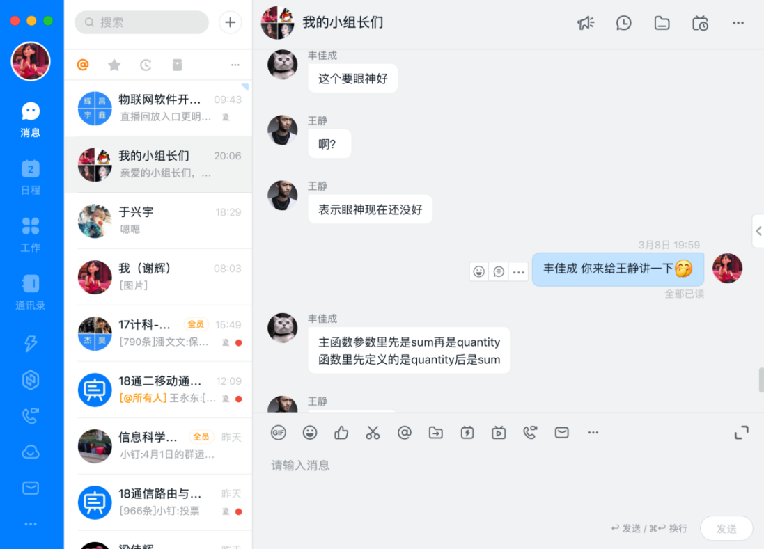 谢老师考虑到是两个班共80位学生一起上课,为了避免有同学跟不上或者课上有问题没来得及解决的情况,谢辉老师在《物联网软件开发基础(Java版)》这门课程刚开始的时候,就组建了学习小组。将80个同学分成8个小组,每个组选了小组长,并组建了小组长群。不定期向小组长收集问题和询问大家的学习情况,对于比较集中或者比较难的点,在下一次上课时会跟大家再讲解一遍,统一进行答疑。