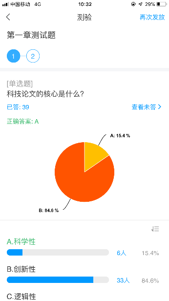 本门课程的线上教学通过“QQ语音电话+屏幕分享”的方式进行,为两个班级分别建立了QQ群。截止到目前,本门课程共进行两个班级的线上教学累计12次,应上线人数468人次,实际上线人数467人次,上线率达到99.8%。课程进行中通过语音通话进行课堂提问,每节课后均通过学习通软件进行课后跟踪测试。通过课程测试,发现前期同学们接受情况较为一般,但是通过一阶段的适应,同学们均能较好掌握课堂知识。