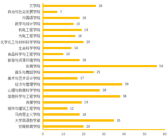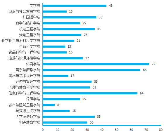 图4. 各院(部)4月2日线上授课教师数(人次)分布图