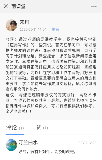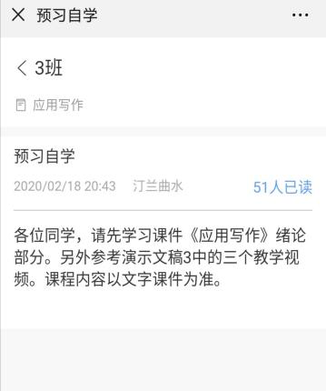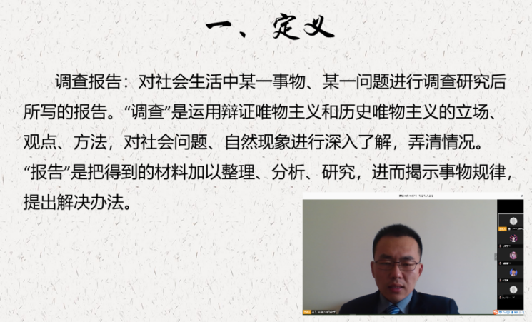 网络媒介交互手段的多样性,为教学信息交流、师生互动提供了便利,但网络教学也对教师提出新要求。网络教学要将课堂教学的有益做法与网络平台的丰富资源有机结合起来,以实现教学效果的最优化。本学期文学院田玉龙老师采用了雨课堂、腾讯会议等媒介,讲授《应用写作》和《文学创作》两门课程。他以《应用写作》为例,将网络授课的一些做法小结如下: